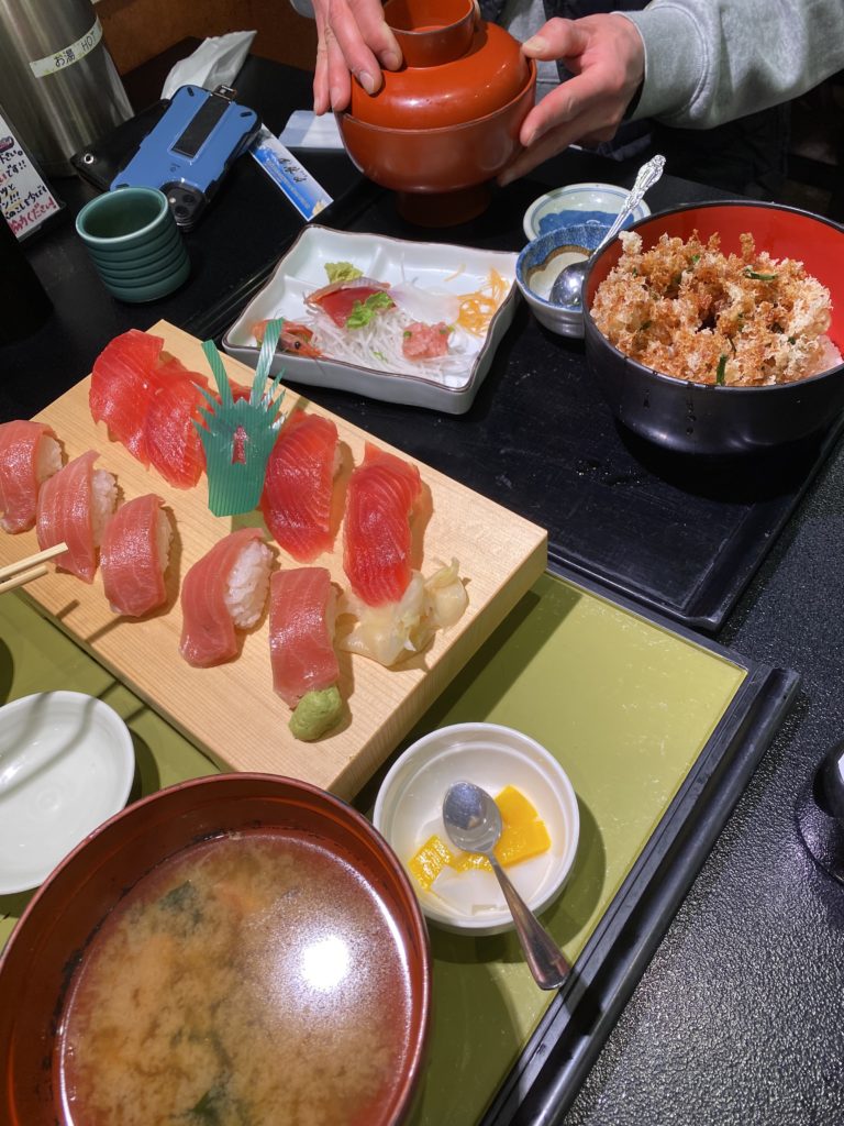 夜には近くの港の食事処へ行き、有名なマグロ屋さんでマグロやかき揚げなどをいただいてきました。マグロが大好きな娘っ子は、普段は食が細くて苦労していますが、ここぞといっぱい食べていました。追加したポテトとエビのフリットは、エビがお刺身で使われているような海老さんで大きくて食べ応えもあり、こちらもとっても美味しかったです。